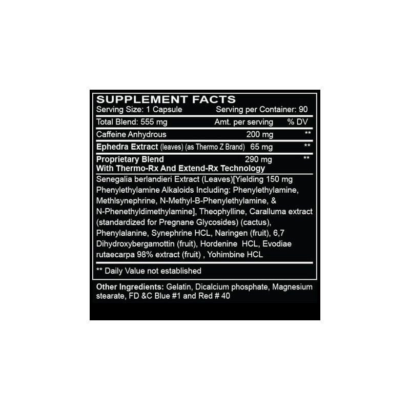 - Ephedra Extract (leaves) (65 mg as Thermo Z Brand): This potent ingredient is central to the Black Mamba’s reputation. Ephedra Extract is celebrated for its powerful thermogenic effects, stimulating the body’s core temperature to increase calorie expenditure and promote fat oxidation.