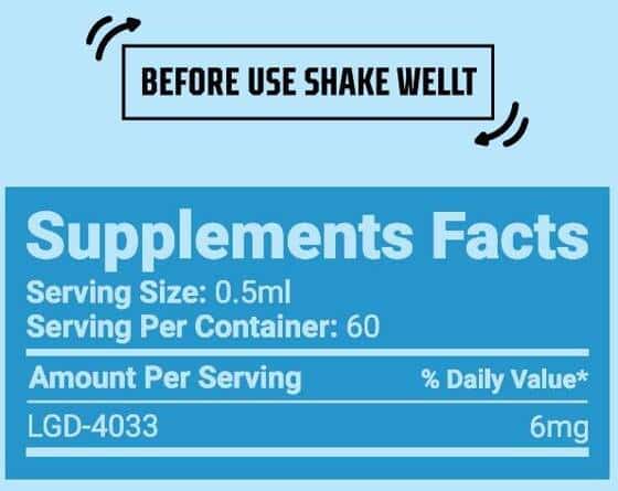 - Recommended Daily Dosage: For typical users, 1 serving of 1 ml per day is advised. Each 1 ml serving contains 6 mg of LGD-4033 (Ligandrol).