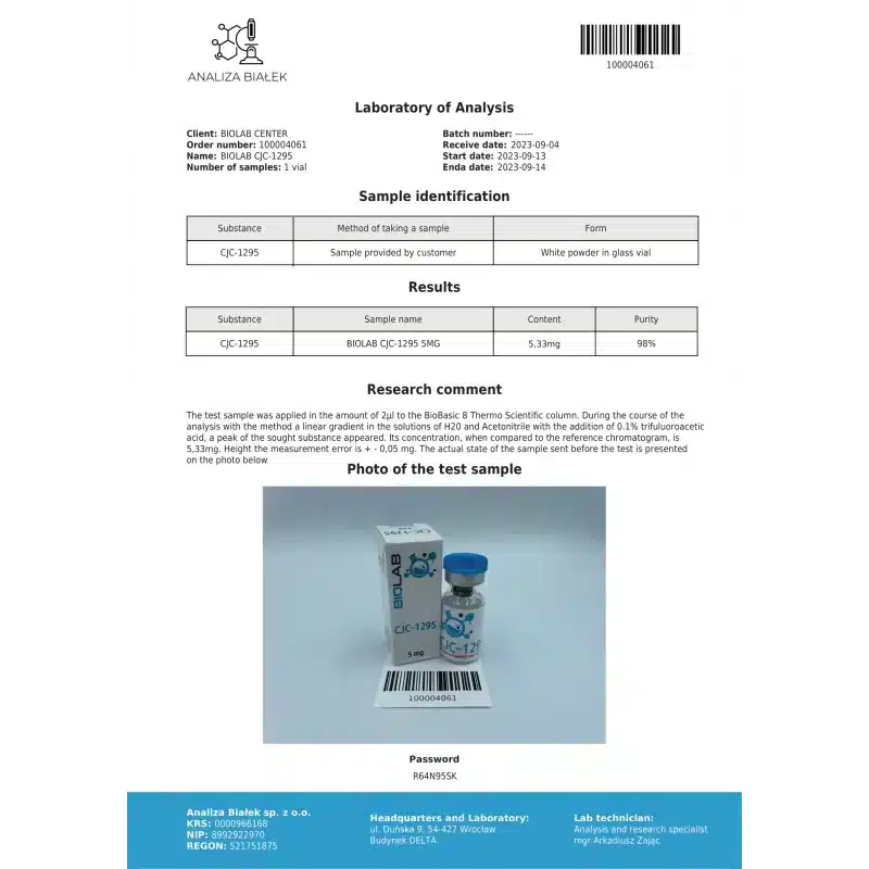 When you choose to buy CJC-1295 5 mg BioLabs online in Europe from Peakbulk.com, you are selecting a partner committed to scientific excellence. We understand the stringent requirements of research, which is why we ensure that all our products, including this premium BioLabs peptide, are lab-tested for purity and potency. Our dedication to quality means you receive a reliable and consistent product for your valuable studies.