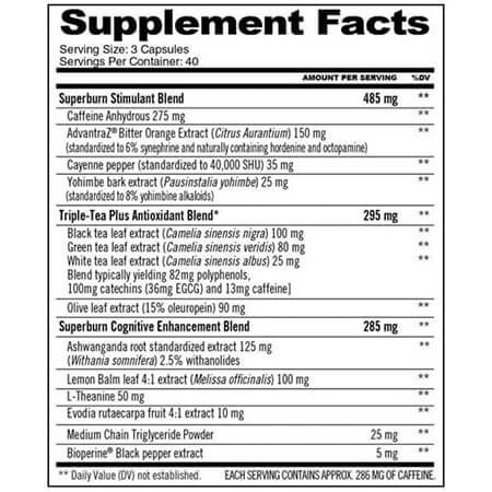 The effectiveness of Jetfuel Superburn is rooted in its meticulously crafted composition. Each serving (3 capsules) delivers a powerful blend of active ingredients: