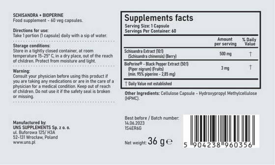 What is UNS Schisandra + Bioperine?