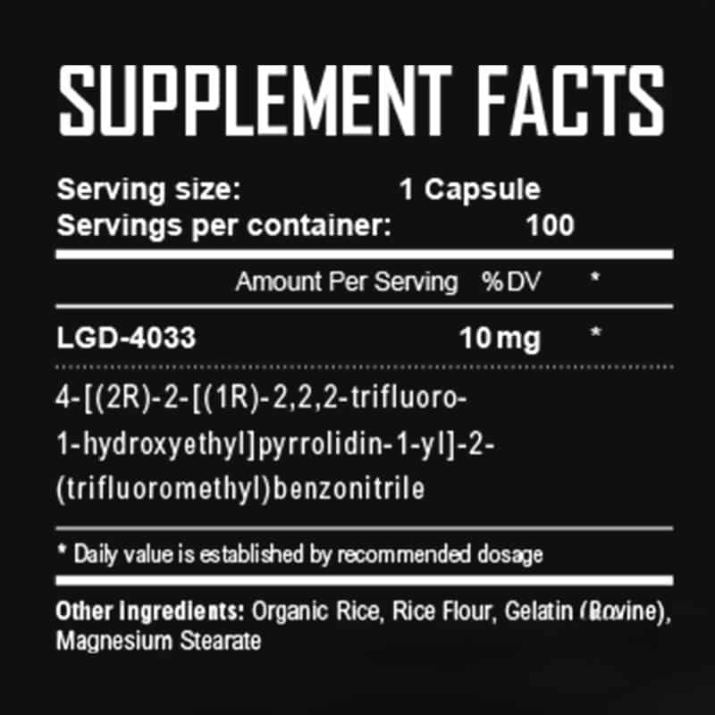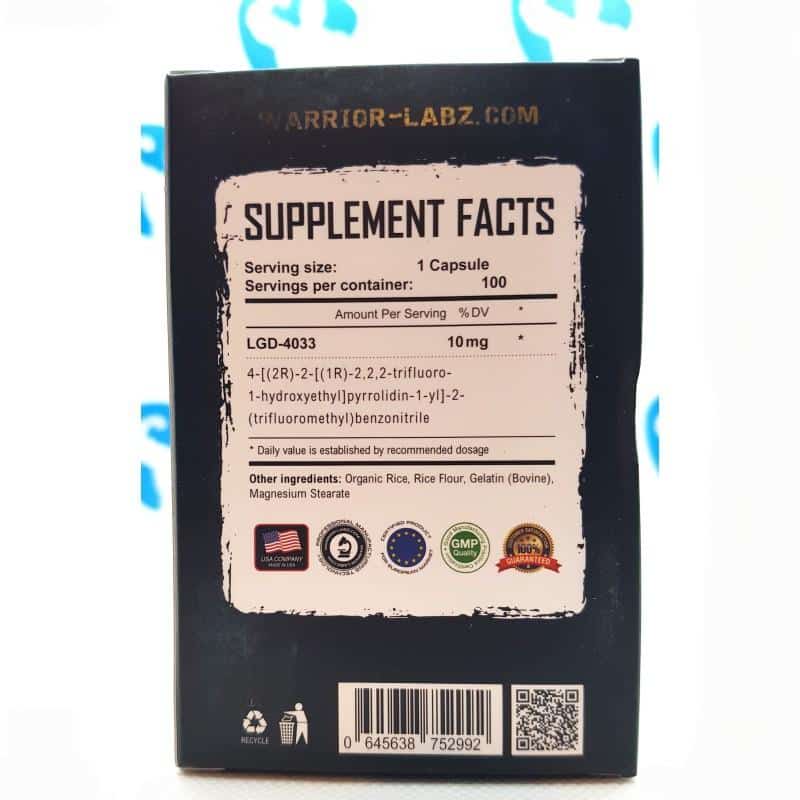 • Doporučené dávkování: For optimal results, take 10 mg of LGD-4033 per day, which corresponds to one capsule of Warrior Labz Ligandrol.
