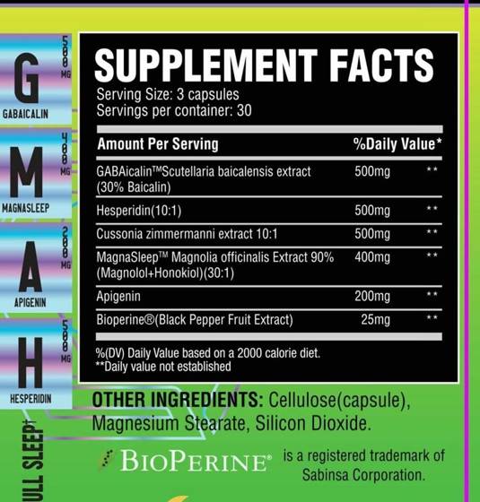 - MagnaSleep™ (Standardized Magnolia Bark Extract standardized to 90% magnolol and honokiol): A cornerstone of the formula, MagnaSleep™ works in harmony with GABAA receptors to effectively alleviate tension and prepare your body and mind for a peaceful transition into sleep. The high standardization ensures consistent potency and efficacy.