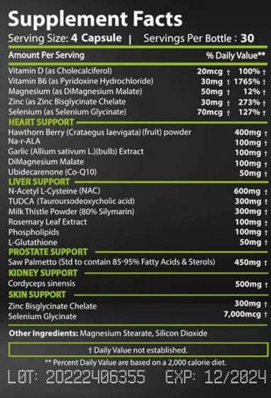 - Comprehensive organ protection for liver, kidneys, heart, prostate, and skin.