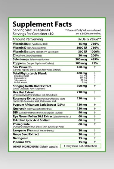 • Supports Healthy Prostate Function: The synergistic blend of ingredients works together to maintain optimal prostate health, ensuring its proper functioning as you age.