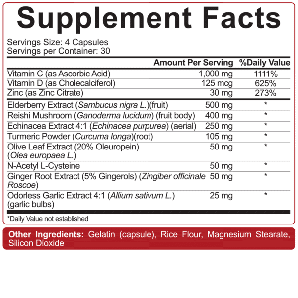 Defensor inmunológico is more than just an immune support supplement; it’s a comprehensive shield for your well-being. Each bottle contains 120 capsules packed with a meticulously selected array of potent antioxidants and immune-modulating ingredients. From traditional herbal extracts like Elderberry and Reishi Mushroom to advanced compounds like N-Acetyl Cysteine (NAC), this formula is engineered to provide multi-faceted support for your immune system, helping you combat pathogenic microorganisms and accelerate recovery.