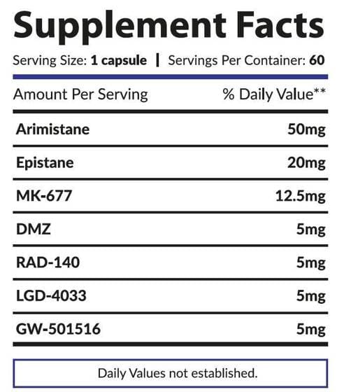 - SARMs (RAD140, LGD4033, GW501516) & Prohormone (DMZ): This blend of Selective Androgen Receptor Modulators and a potent prohormone targets specific androgen receptors and converts into highly anabolic compounds. They work to amplify muscle protein synthesis, leading to significant gains in muscle mass, strength, and improved endurance.