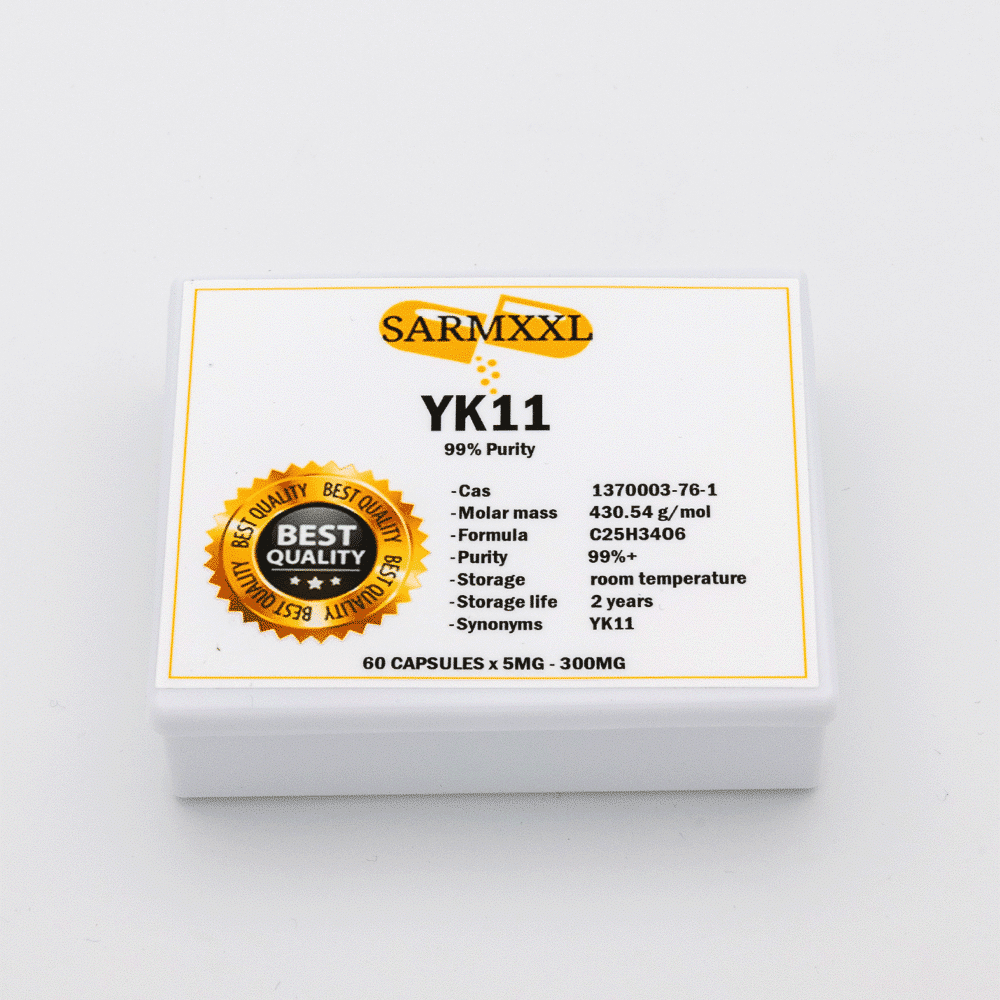YK11 is a cutting-edge compound highly regarded in the fitness and bodybuilding communities for its unique properties. Each bottle of SARMXXL YK11 capsules contains 60 servings, with each capsule delivering a precise 5mg dose of this potent agent. Known by its chemical identifier, YK11 boasts a CAS number of 1370003-76-1, a Molar Mass of 430.54 g/mol, and a Chemical Formula of C25H34O6. SARMXXL ensures exceptional quality with a purity of 99%+ for its YK11 compound, providing you with a reliable and effective product for your bulking cycle.