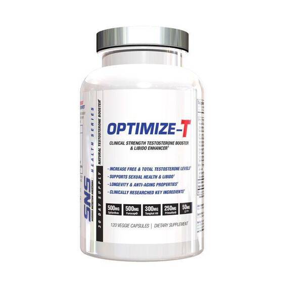 SNS Optimize-T 120 caps is a premium, all-natural dietary supplement formulated to optimize male hormonal health. Categorized within PCT (Post Cycle Therapy) and general sports and fitness supplements, it provides a comprehensive blend of ingredients to naturally boost testosterone, aiding in muscle strength, recovery, libido, and overall vitality.