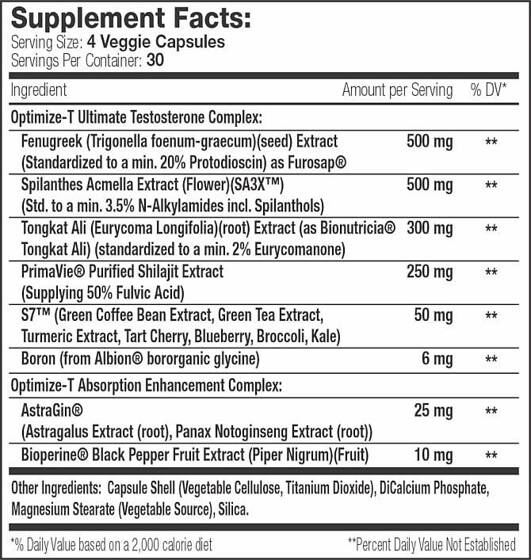 Serious Nutrition Solutions (SNS) has carefully selected and dosed each ingredient in Optimize-T 120 caps for synergistic action, targeting multiple pathways to support healthy testosterone levels and male well-being: