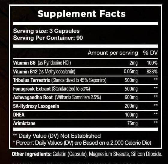 Testosterone Synthesis: Tribulus Terrestris (500 mg, standardized to 45% Saponins) boosts luteinizing hormone (LH) production, signaling increased natural testosterone. This supports muscle mass, strength, and libido.