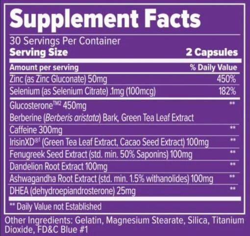- Glucosterone (Berberine and Green Tea Leaf Extract) – 450 mg: This patented blend is at the heart of Finaflex PX For Him’s metabolic support. Berberine is renowned for its ability to improve glucose metabolism and enhance insulin sensitivity, helping the body to utilize carbohydrates more effectively and prevent fat storage. Green Tea Leaf Extract, a well-known thermogenic agent, further boosts metabolic rate and promotes fat oxidation, contributing to the supplement’s effectiveness as a brûleur de graisse thermogénique. Together, Glucosterone helps manage glucose levels, supports efficient energy utilization, and aids in weight management.