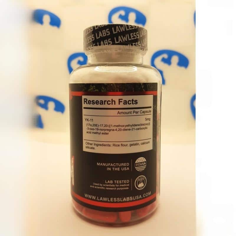 Pour des résultats optimaux, prenez 1 capsule of Lawless Labs Myosarm SARM YK-11 per day. Chaque capsule contient 5 mg of YK-11. The container provides 90 portions, ensuring a generous supply for your muscle-building cycle.