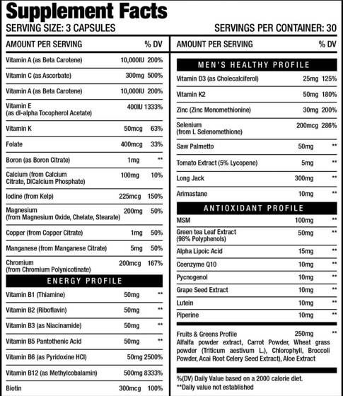 Composition of RIPP’D Nutrition Lions Multi Men’s: