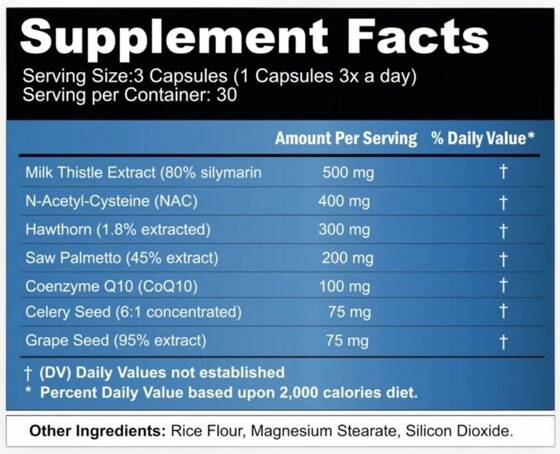 Each serving of 3 capsules delivers a synergistic blend of active ingredients, carefully selected for their proven efficacy in organ protection and detoxification:
