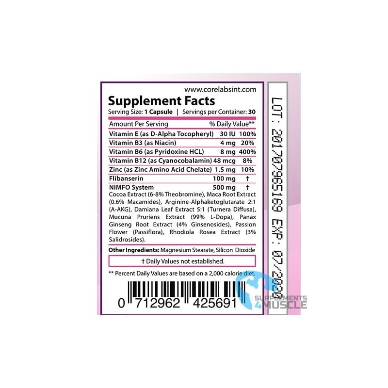 Core Labs X Nimfo is more than just a supplement; it’s a carefully crafted formula aimed at empowering women to reclaim their vitality and passion. With 30 capsules per container, Nimfo targets key areas of female sexual health, from boosting libido to improving mood and energy. Its unique blend of scientifically backed compounds works synergistically to provide comprehensive support for a fulfilling intimate life.