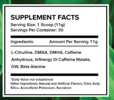 - High Dose of DMHA: Contains a potent amount of DMHA for a significant and sustained energy boost, superior to many standard pre-workouts.