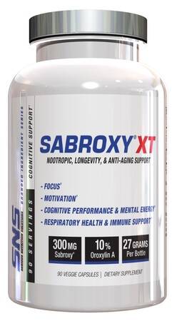 SNS Sabroxy XT is a high-quality supplement designed for individuals seeking superior cognitive support and adaptogenic benefits. As a leading nootropic, it targets key areas of brain function, including memory, concentration, and mental clarity. Beyond its cognitive prowess, SNS Sabroxy XT acts as a potent adaptogen, aiding in nervous system recovery, stress resilience, and fostering a greater sense of well-being and motivation. Each bottle contains 90 caps, providing a convenient supply of this advanced brain support formula.