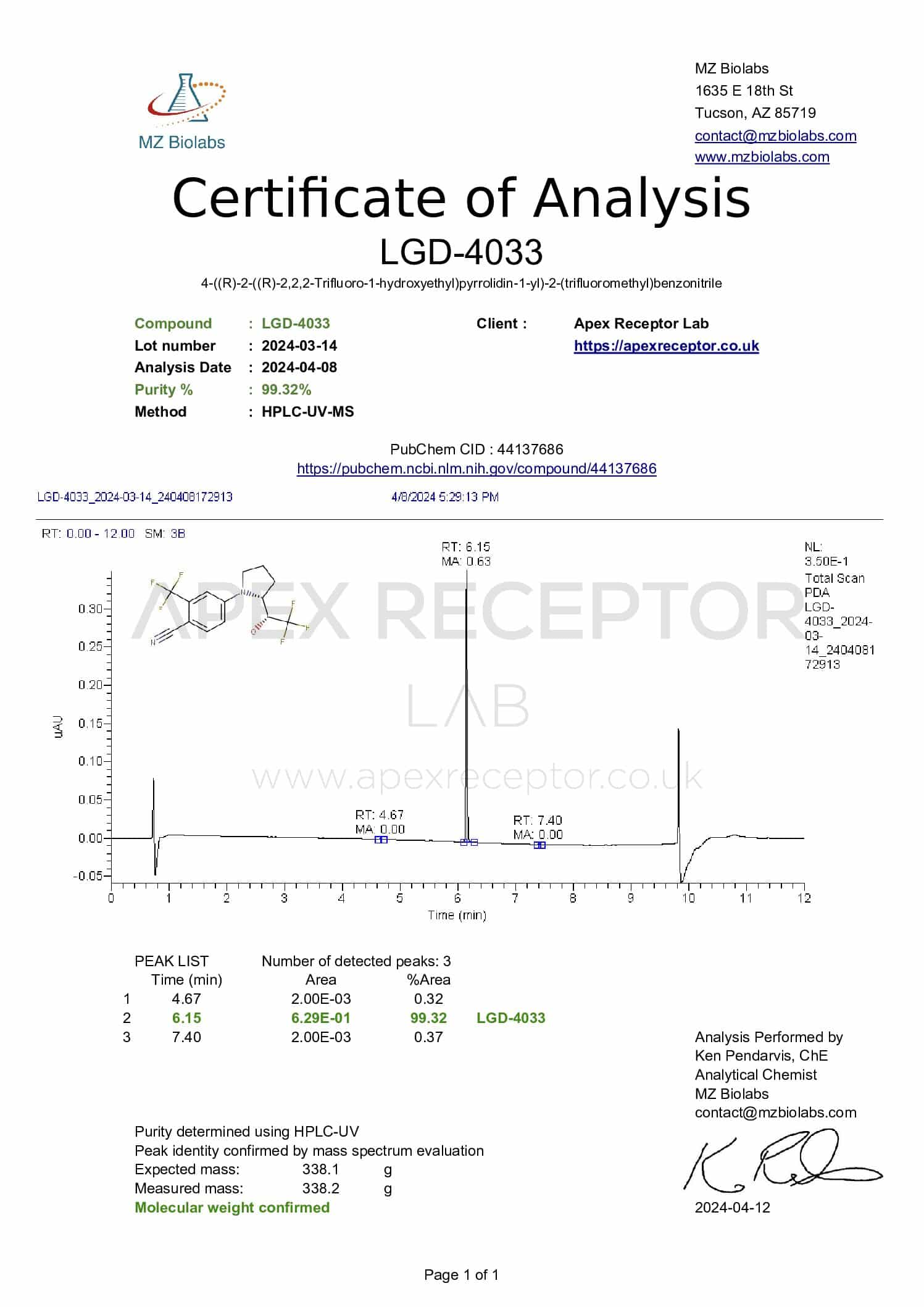 At Peakbulk, we are committed to providing researchers across Europe with the highest quality compounds, including Apex Receptor Lab LGD-4033 Ligandrol. When you choose to buy LGD-4033 online Europe from us, you’re investing in unparalleled quality and service:
