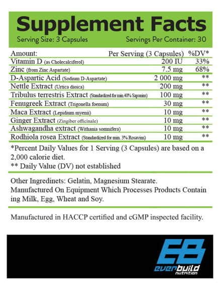 EB TEST Build delivers its powerful effects through a synergistic blend of proven ingredients. Each serving consists of 3 capsule, providing optimal dosages for maximum impact:
