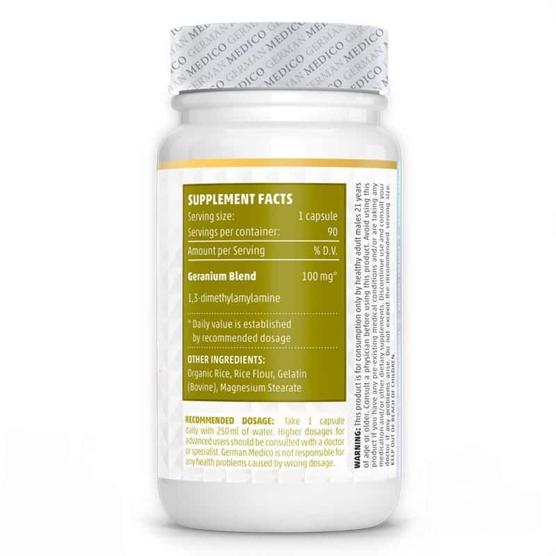 German Medico Geranium is a high-potency sports and fitness supplement designed to push your physical and mental limits. At its core is DMAA (1,3-dimethylamylamine), a well-known stimulant celebrated for its profound effects on energy and concentration. This product is ideal for those who require maximum intensity and sustained drive during rigorous training sessions, helping you achieve peak performance every time.