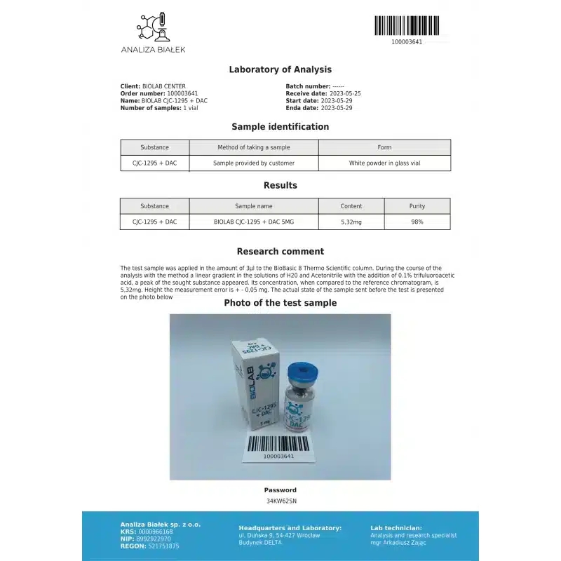 When you choose to buy CJC-1295 + DAC 5 mg from Peakbulk, you are selecting a partner committed to scientific excellence. We understand the critical need for high-quality, reliable research materials. Our selection includes premium BioLabs products, ensuring that every compound you receive is of the highest standard. We are proud to offer lab-tested peptides, providing researchers across Europe with confidence in their experimental outcomes.