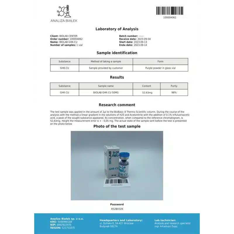 GHK-Cu Peptide di Rame 50 mg BioLabs: Premium Research Compound for Scientific Study