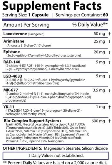 The efficacy of Core Labs LX-GH Pro stems from its synergistic blend of six active compounds, each crucial for muscle growth, strength, and performance. The formula includes Laxosterone, Epistane, RAD-140, LGD-4033, MK-677, and YK-11, alongside a Bio-Complex Support System: