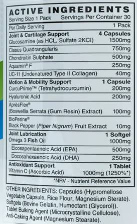 - UC-II (Type II Collagen) (40 mg): A patented form of undenatured Type II Collagen, UC-II is clinically shown to aid in restoring cartilage and significantly improve joint elasticity and flexibility.