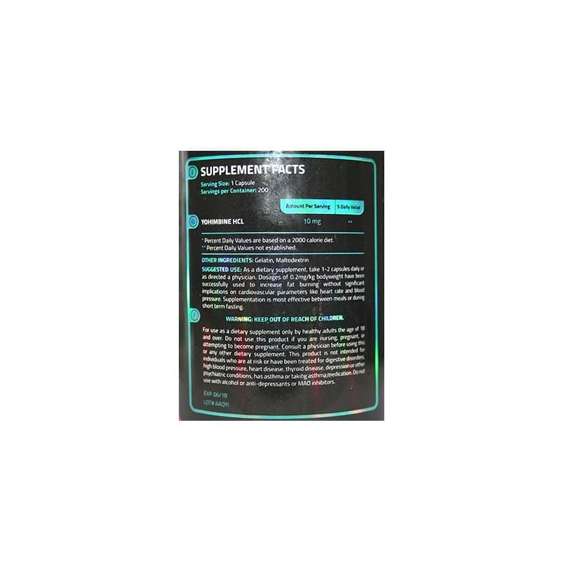 - Productinhoud: Each capsule delivers 10 mg of pure Yohimbine HCl.