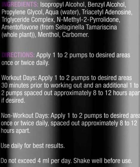 - On Non-Training Days: To support continuous muscle recovery and blood flow, use 1 to 2 pumps on targeted areas once or twice daily, ensuring applications are about 8 to 12 hours apart.