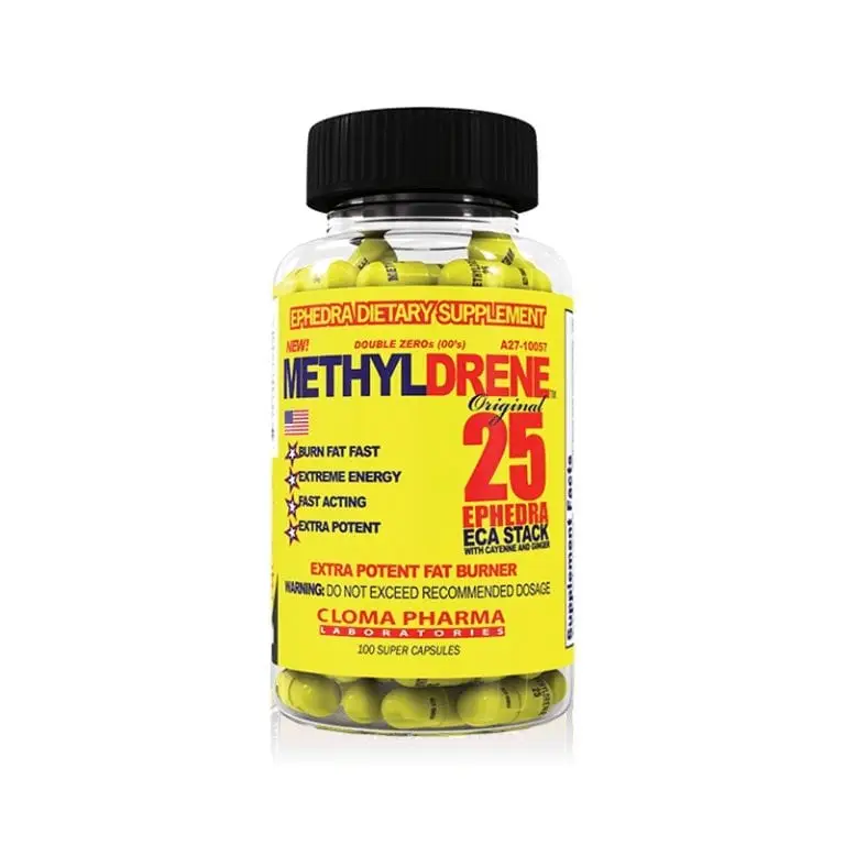 Methyldrene EPH 25 by Cloma Pharma is a cutting-edge fat-burning supplement renowned for its potent formulation. At its core lies the classic ECA Stack, a synergistic combination of Ephedra, Caffeine, and White Willow Bark (a natural source of salicins, akin to aspirin). This powerful trio is further enhanced by a comprehensive “Methyldrene Fat-Burning Support System” that includes key compounds like Johimbina HCL, Synephrine, Green Tea Extract, and Ephedrine HCL, alongside essential vitamins. Each capsule is meticulously crafted to provide a robust solution for effective weight management and enhanced physical performance.