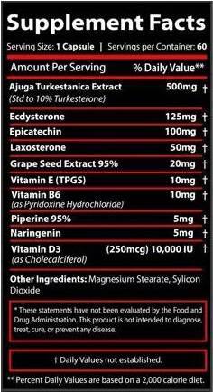 - Enhanced Protein Synthesis: Ten 500 mg of Ajuga Turkestanica Extract (10% Turkesterone) per capsule significantly boosts protein synthesis, allowing muscles to repair and grow faster after intense workouts. Turkesterone is renowned for promoting rapid development of muscle tissue.