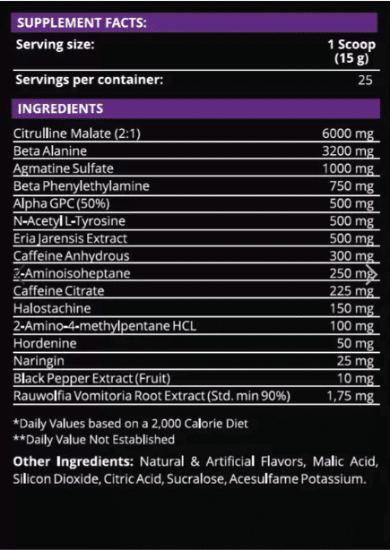 - Extreme Energy & Focus: Dominate your workouts with powerful stimulants like Kofeina, DMHA, I Eria Jarensis Extract.