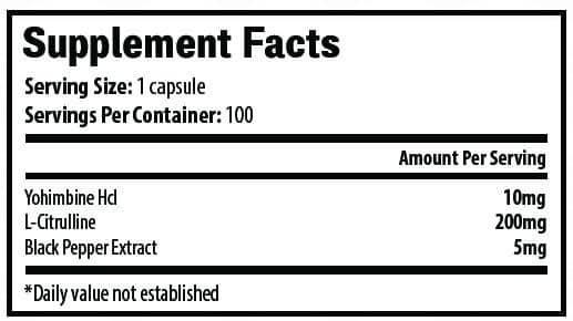 Complementing Yohimbine HCL, each capsule contains 200 mg of L-Citrulline. This amino acid converts into L-Arginine, significantly enhancing nitric oxide (NO) production. Increased nitric oxide levels lead to vasodilation, improving blood circulation throughout the body. This synergistic effect amplifies nutrient delivery to muscles during workouts, boosting training intensity and stamina. The improved circulation also supports the product’s aphrodisiac effects, enhancing erections and overall sexual function and libido, providing a holistic boost to your physical and mental well-being.