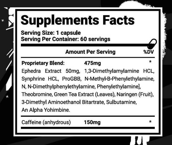 - Accelerated Fat Burning: Potent thermogenics like Ephedra extract and Caffeine drive your metabolism to burn fat more efficiently.