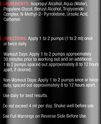• Apply 1 to 2 pumps once or twice a day, spacing applications approximately 8 to 12 hours apart, to maintain continuous support for muscle growth and recovery.