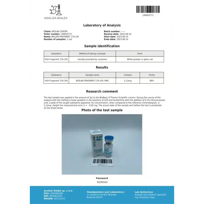 Unlock the potential of targeted fat loss and metabolic support with FRAGIMENTO 176-191 SPRAY 5mg from BioLabs, available exclusively at Peakbulk.com. As a leading European supplement store, we provide premium, lab-tested research peptides designed for scientific exploration. This advanced synthetic peptide, often referred to as the “lipolytic fragment” of human growth hormone, offers a focused approach to understanding fat metabolism and cartilage health without the broader effects of full hGH.