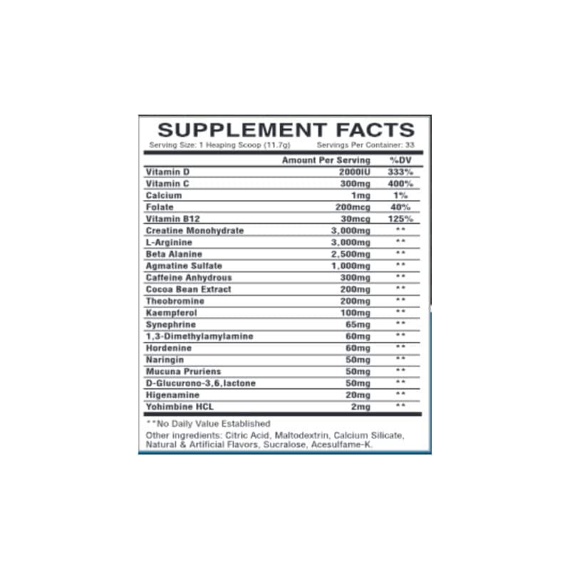 - 1,3-Dimethylamylamine (DMAA) (60 mg): A powerful stimulant for intense energy, heightened focus, and strong thermogenic action.