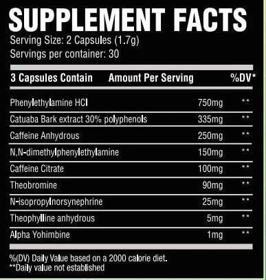 Each serving of Chemix Energy contains 2 capsules, meticulously formulated with the following potent ingredients: