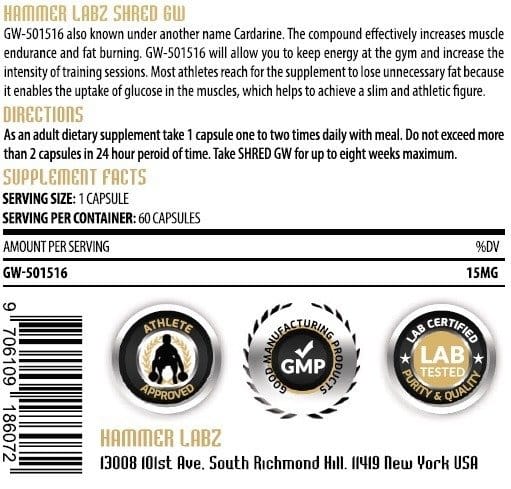 Each bottle of Hammer Labz Shred GW contains 60 capsules. For optimal results, always adhere to the manufacturer’s recommended dosage instructions provided on the product label. Consistent use, combined with a balanced diet and regular exercise, will maximize the benefits of this potent fat burner supplement.