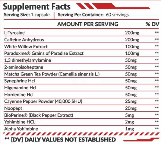 • Intense Stimulation & Focus: Hero Nutrition Red Inferno features 2-Aminoisoheptane (DMHA) (50 mg), a potent stimulant known for lifting mood, sharpening focus, and providing sustained energy. Caffeine Anhydrous (200 mg) further boosts workout intensity and promotes fat loss. L-Tyrosine (200 mg) supports metabolism and enhances cognitive function, keeping you sharp and motivated.