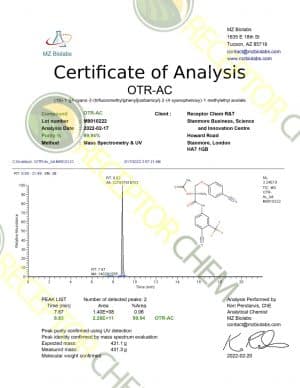 OTR-AC is a cutting-edge compound from Receptorchem, presented as a convenient liquid formulation. Each vial contains 50 ml of solution at a concentration of 10 mg/ml, delivering a substantial total of 500 mg (50 x 10 mg) of the active substance. This product stands out with its exceptional purity, boasting >99%, which is crucial for accurate and reproducible research. Chemically, OTR-AC has a Molecular Weight of 453.498 g/mol and a Molecular Formula of C21H18F3N03S2. It is also identified by its CAS Number: 317318-70-0. OTR-AC is an acetate ester of Ostarine, a well-known selective androgen receptor modulator (SARM), indicating a modification designed potentially for improved pharmacokinetics or stability.